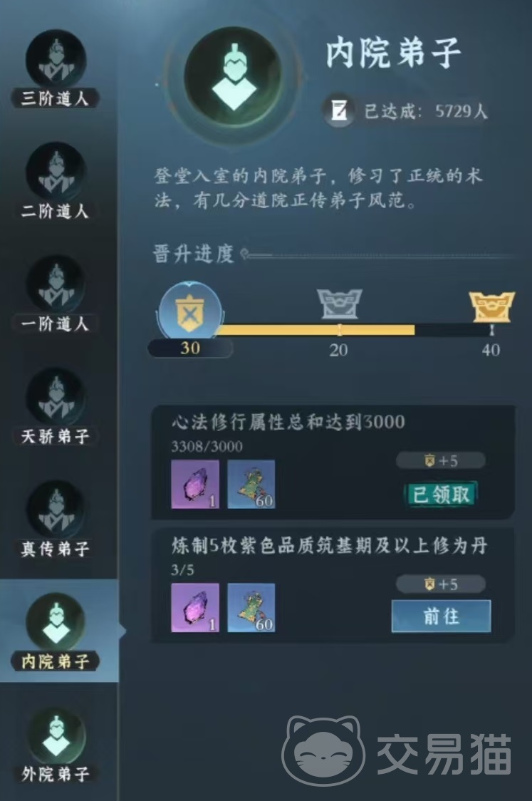 提高自身到院地位之后,还能提升洞府上限,除了参加悬赏之外,完成到院里面的试炼任务,也可以获得相应的威望,总体来说地位提升也是比较快。道院地位从最初的杂役弟子到后续外院弟子,内院弟子,真传弟子和天骄弟子,不仅仅有威望上的条件,还需要达到一定境界,例如天骄弟子只有达到金丹中期才能解锁。