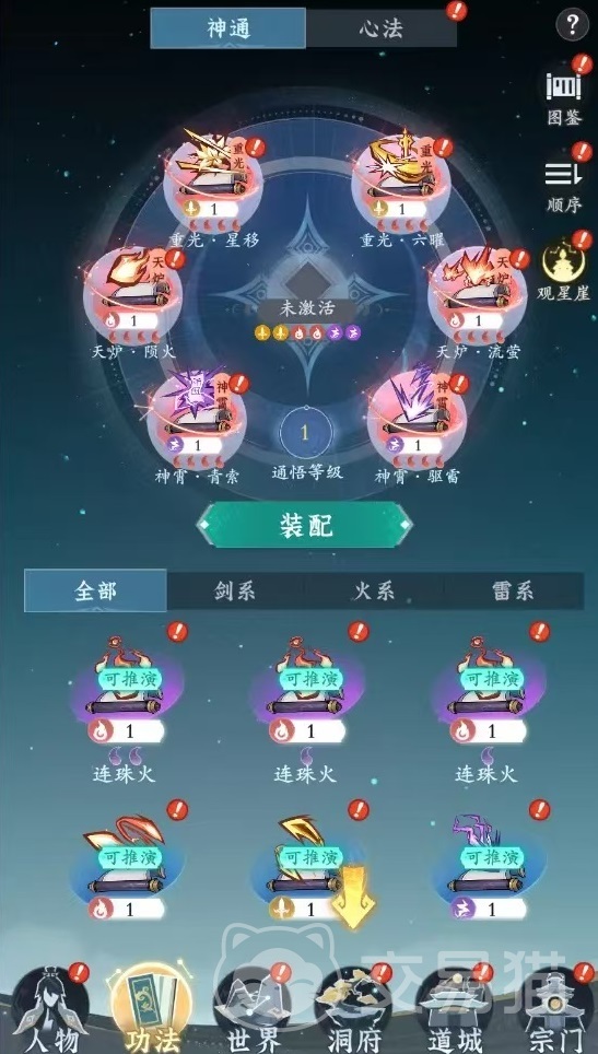 需要装配两个神通才可以解锁该玩法,每装配一个,引爆灼烧造成的伤害就能获得提升。神通搭配推荐有4个分别是陨火、炽炎、流萤和丹朱。这些神通也都是范围伤害,同样能够重复命中,带来的特殊效果是引爆目标最多三层灼烧,然后立即对周围三个目标造成剩余灼烧伤害,引爆造成的最终伤害额外提升20%。还有一个丹朱效果,4次行动命中时对目标附加灼烧。