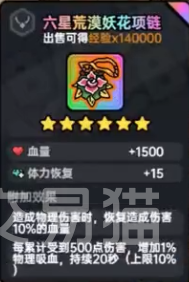 先来看一下主要的技能特点,反击棘甲有两个效果,第1个是被动提高物理抗性,主动效果是在开启后,受到单位伤害时,对来源造成30%反伤效果,还有额外附加固定伤害,开启之后能持续10秒钟。这就意味着开启之后直接朝人多地方冲过去,充分利用好反伤打出输出。在装备搭配方面,首先推荐六星荒漠妖花项链,它能够增加血量和体力恢复,在造成物理伤害时可恢复造成伤害10%的血量,每受到500点伤害,就能增加1%物理吸血,持续20秒钟。