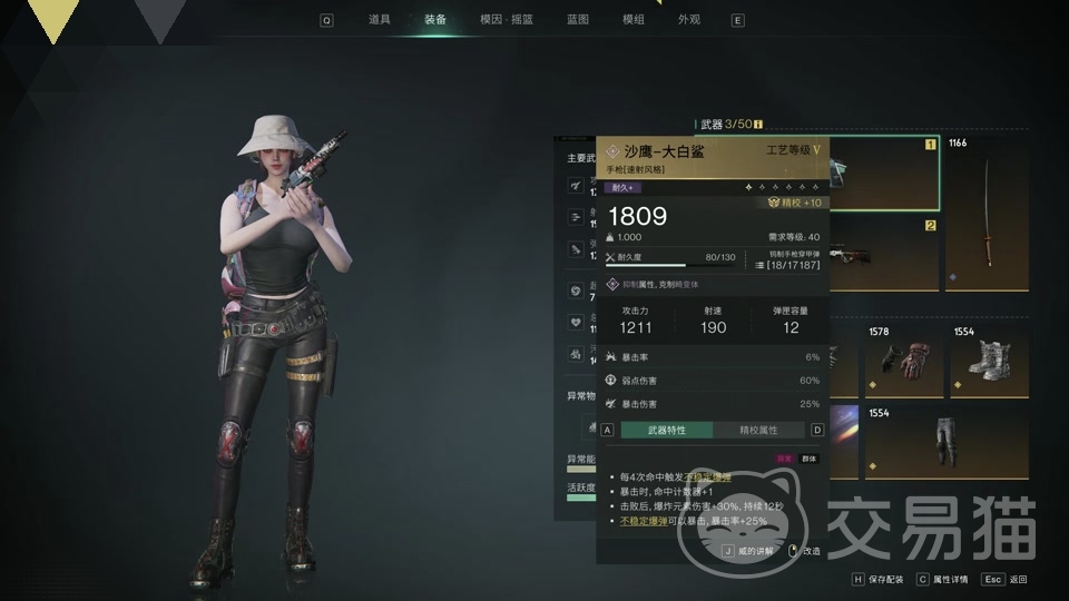 在没有拿出来射击的初始状态中,大白鲨的暴击率是6%,并且额外附带25%的暴击伤害,再加上每强化一次暴击率也会跟着提升,游戏中强化武器的主要方式就是给它搭配强悍的装备配件,比如可以增加瞄准精度的瞄准镜,可以看到敌方精准目标位置的激光指示器,以及能够装下更多子弹,容量更大的弹夹等等。搭配上了这些更加强力的辅助型道具,也利于玩家将大白鲨的性能发挥到极致,实战中精准瞄准敌人并且一击即中。