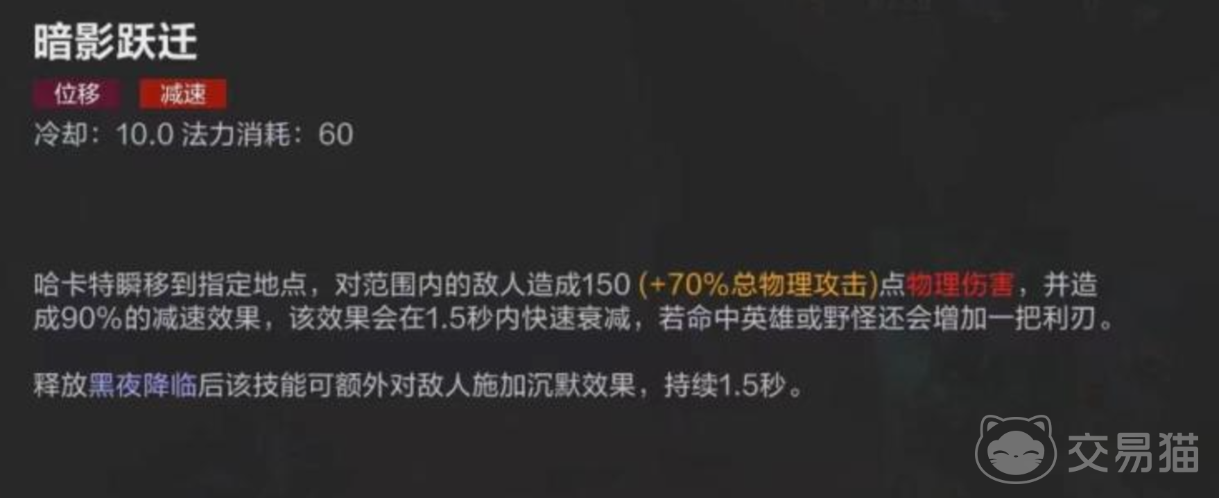 哈卡特的一技能是指定方向就能够伸出暗能之手,而且一旦命中敌人,会让敌人出现0.7秒的眩晕,而且自己和敌人也会向中间拉扯,这时候可以再次指定方向进攻会对敌人造成伤害。他的二技能就是短暂的蓄力之后就可以刺出暗使长剑,从而对敌人造成伤害,并且还可以施加魔法。虽然魔法效果只有4秒,但是能够让敌人持续性的受到伤害,还会留下魔法路径。