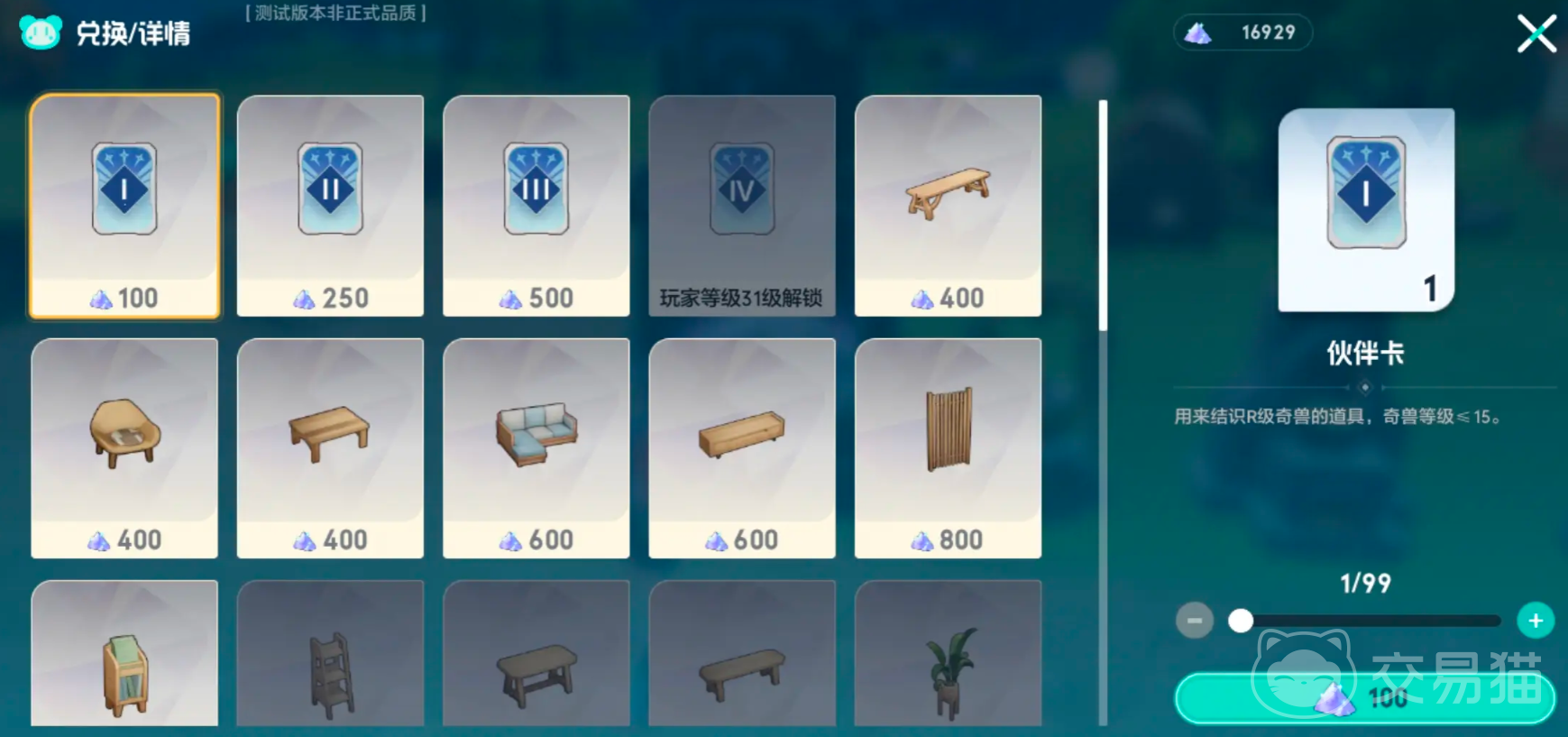 基建也是核心玩法之一,是我们提升装备与获取资源的一大途径,前期我们主要就是以提升基建等级为目标,这样能更快解锁各种新物品,而且第一个给的装备也是我们捕捉宠物的核心物品,如下图所示这里的伙伴卡,就是捕捉R级类宠物的道具,基建的等级越高产出量就会越大。