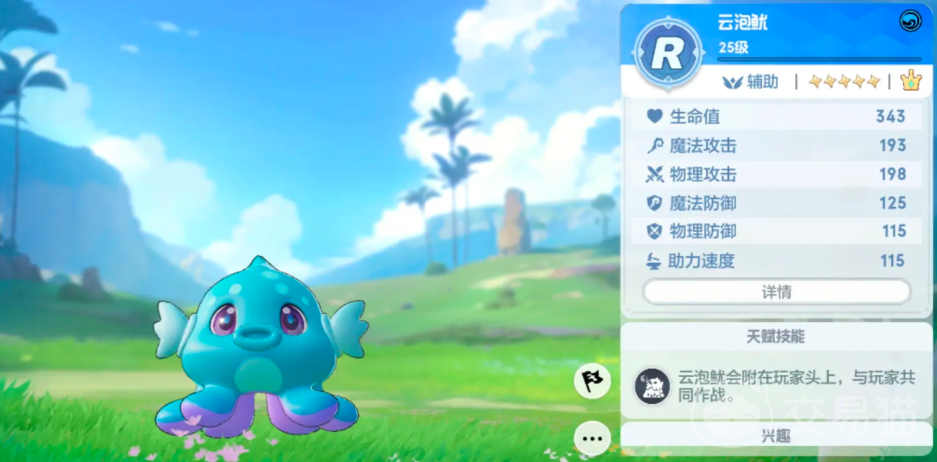 宠物也是有不同类型的,首先来说说输出类,这一类型比较推荐云泡鱿和幻火狐,幻火狐主打近战能化身成为大家的专属火箭背包带我们起飞,战斗的时候能对敌方进行冲锋,将敌人给击退。