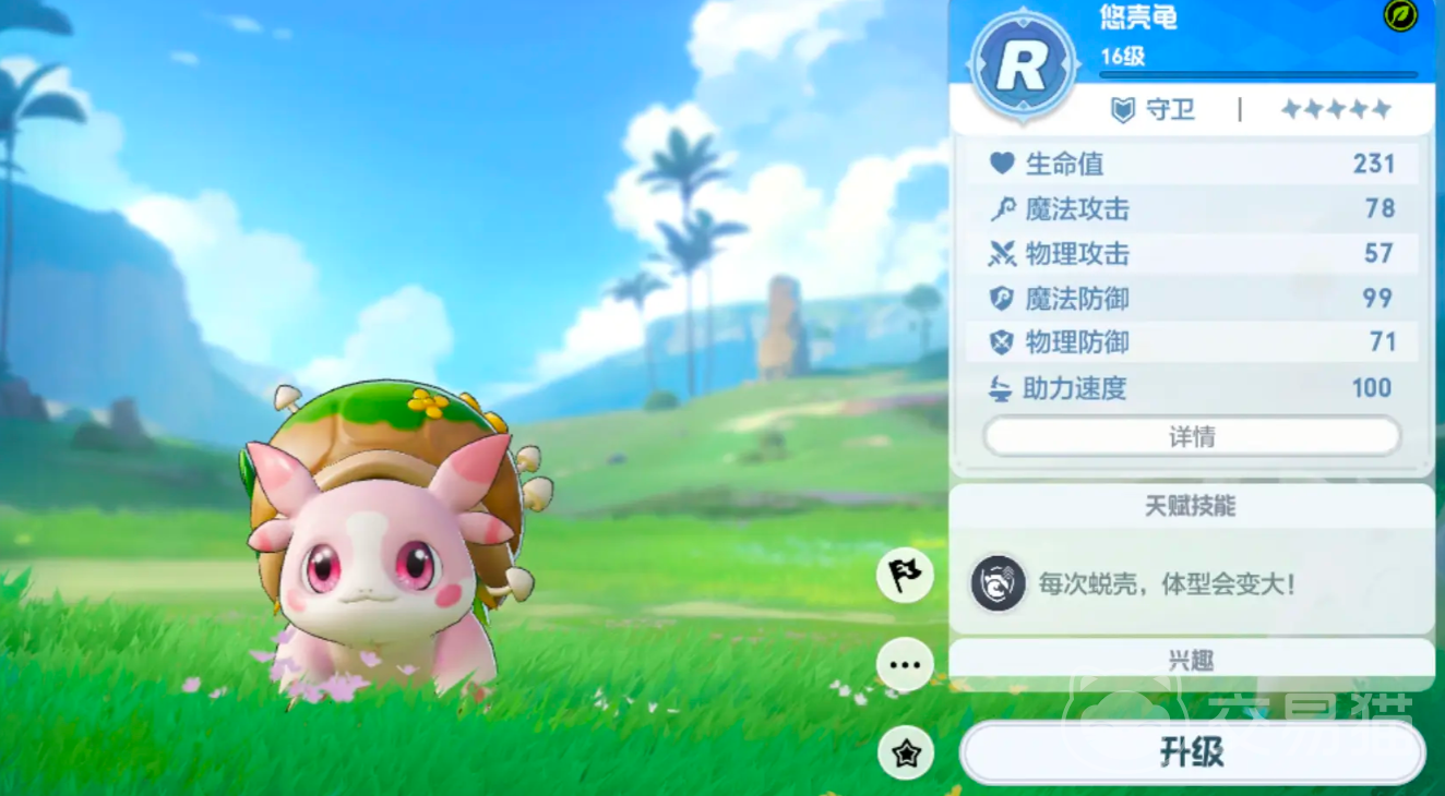云泡鱿的输出有点偏向辅助,点击它的技能可以挂在大家的头上,化身成为无限子弹的机关枪不断进行输出,肉盾宠推荐悠壳龟,它每次蜕壳都能让身体更大,非常的耐揍,可以帮助队友们分摊伤害,到了中后期也有一定作用推荐升到五星。