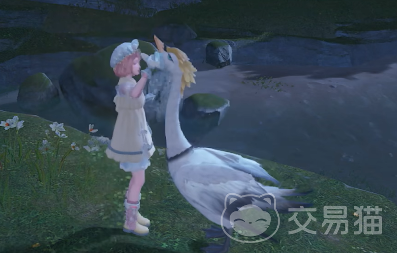 两只鹅中,体态优雅、羽毛乌黑发亮的那只就是燕尾天鹅,它可是掉落夜色天鹅绒的主角。不过,有时候它心情很好会游到水里去,大家也别着急,稍微蹲点等一等,等它回到岸上,再进行下一步。想让天鹅主动贡献夜色天鹅绒,当然需要服务到位。记得换上清洁套装,大家可以在任务或商店里获取。接着上前与燕尾天鹅互动,给它搓个澡,顺便收获它掉落的稀有材料,也就是我们所找的夜色天鹅绒。