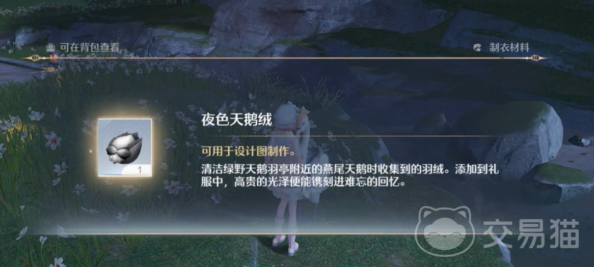 需要注意的是,夜色天鹅绒属于每日限时材料,一天只能获取一次,所以记得每天按时来搓澡。如果时间充裕的话,两只天鹅都照顾一下,材料一次性收齐,以后就不用再跑多一趟了。另外,如果燕尾天鹅游泳去了,别着急催它,稍作等待,鹅上岸才好互动。