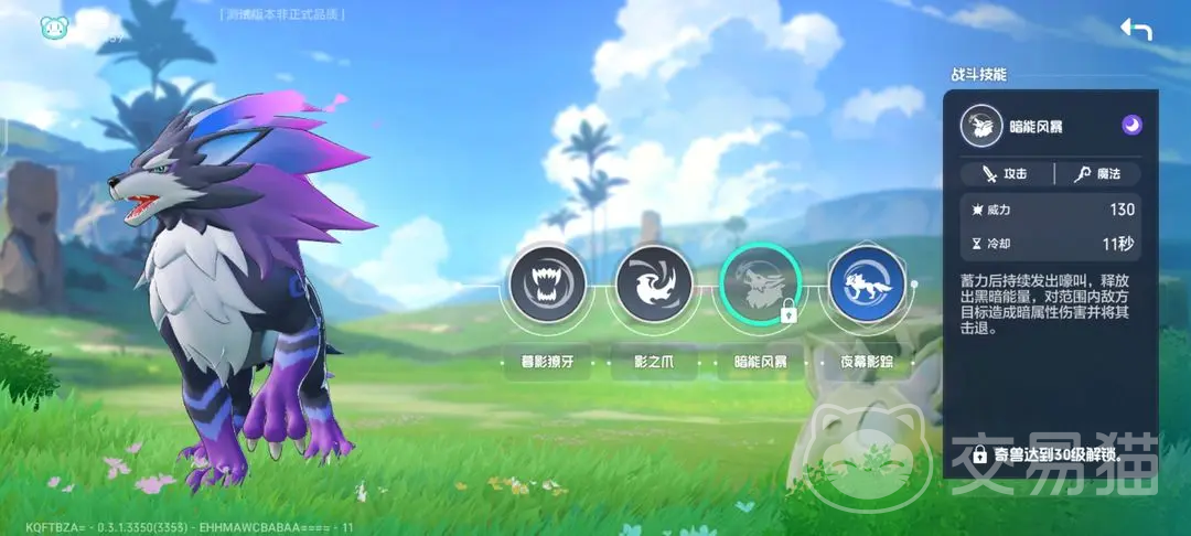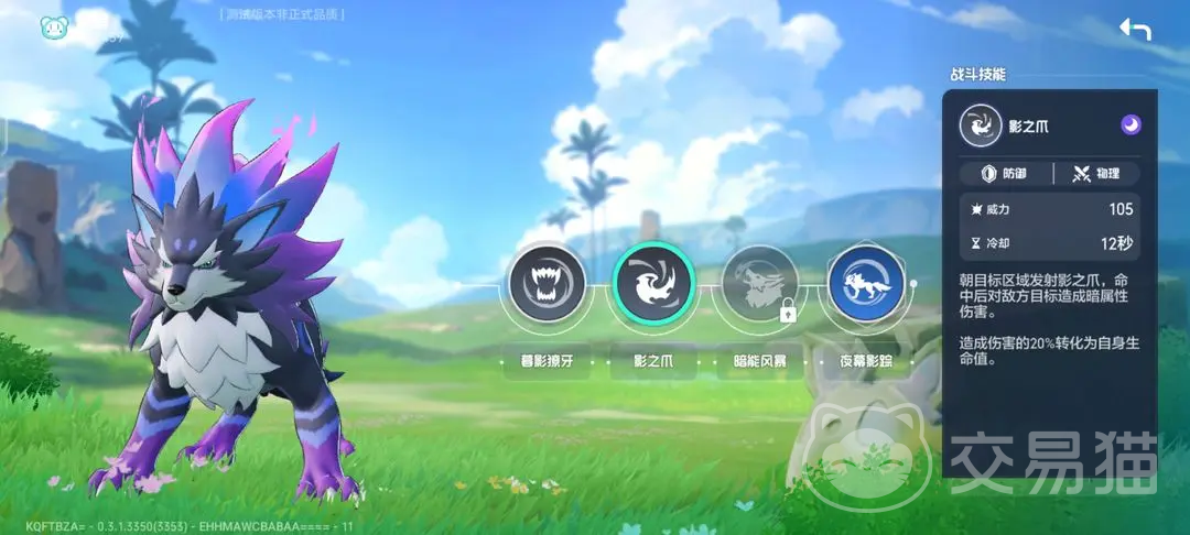 “影之爪”的战斗技能,朝目标区域发射影之爪,命中后敌方受到暗属性伤害,且造成伤害的20%转化为自身生命值。2技能“暗能风暴”,蓄力后持续进行吼叫,黑暗能量溢出,范围内的目标受到暗黑伤害,同时被击退。