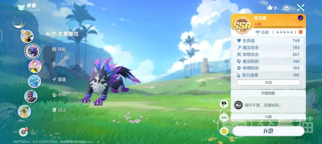 先来看它的属性面板,生命值非常高达到了768,魔法攻击和物理攻击分别150和267,物理输出能力是比较强的,不管是在魔法还是物理防御方面,都是达到了150左右,防御能力也很在线,生存与输出并存的宠物。