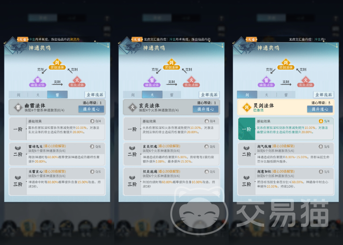 基础效果开启后,那么剑系的发展就能确定下来,装备上四个剑系神通后就能解锁灵剑法体,这种法体也是根据敌方单位血量百分比来加剧伤害的,而且这种法体克制幽雷法体,修炼幽雷的修士被克制,对其打出伤害能增加20%。