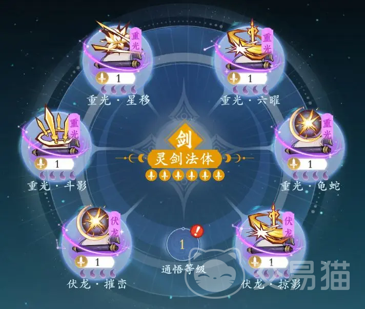 先了解下剑修的特点,精通单体伤害,擅长破盾,适合斩杀敌人。比较合适的发展流派有重光,伏龙。如果是发展重光,那么比较建议将重光·星移当做核心,重光·龟蛇,重光·斗影,重光·六曜也很有必要。