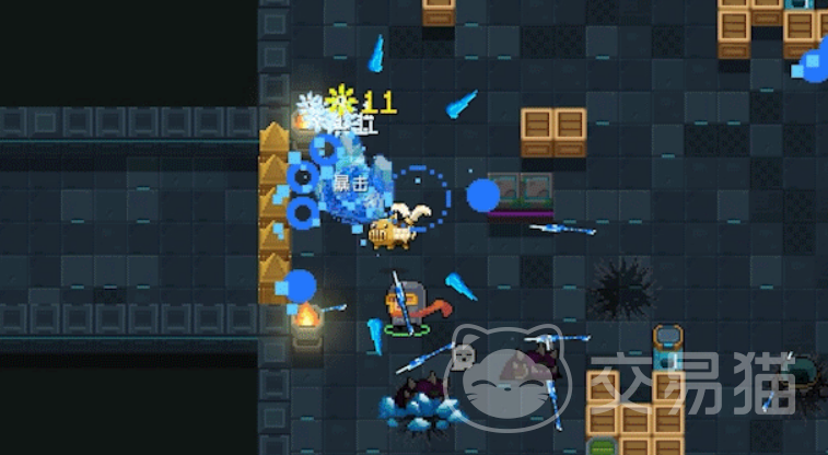 第二种天赋是寒霜冰环,效果是敌人被冰元素伤害击杀时,有概率触发一个冰环。配合群体伤害武器,比如冰法炮或者雪花弓,这个天赋让你每杀一个敌人就能触发冰环,场面上瞬间冰雪四起,敌人动都动不了。第三种天赋是冰雕爆破,效果是敌人被冰元素伤害击杀后,有概率变成冰雕,冰雕会追着敌人爆炸并造成范围冰伤。配合高频率AOE武器,比如激光手枪或者冰封手雷,一旦叠加多层冰雕爆破,屏幕上的敌人就是一连串冰雕追逐大爆炸,效果堪称“烟花秀”。