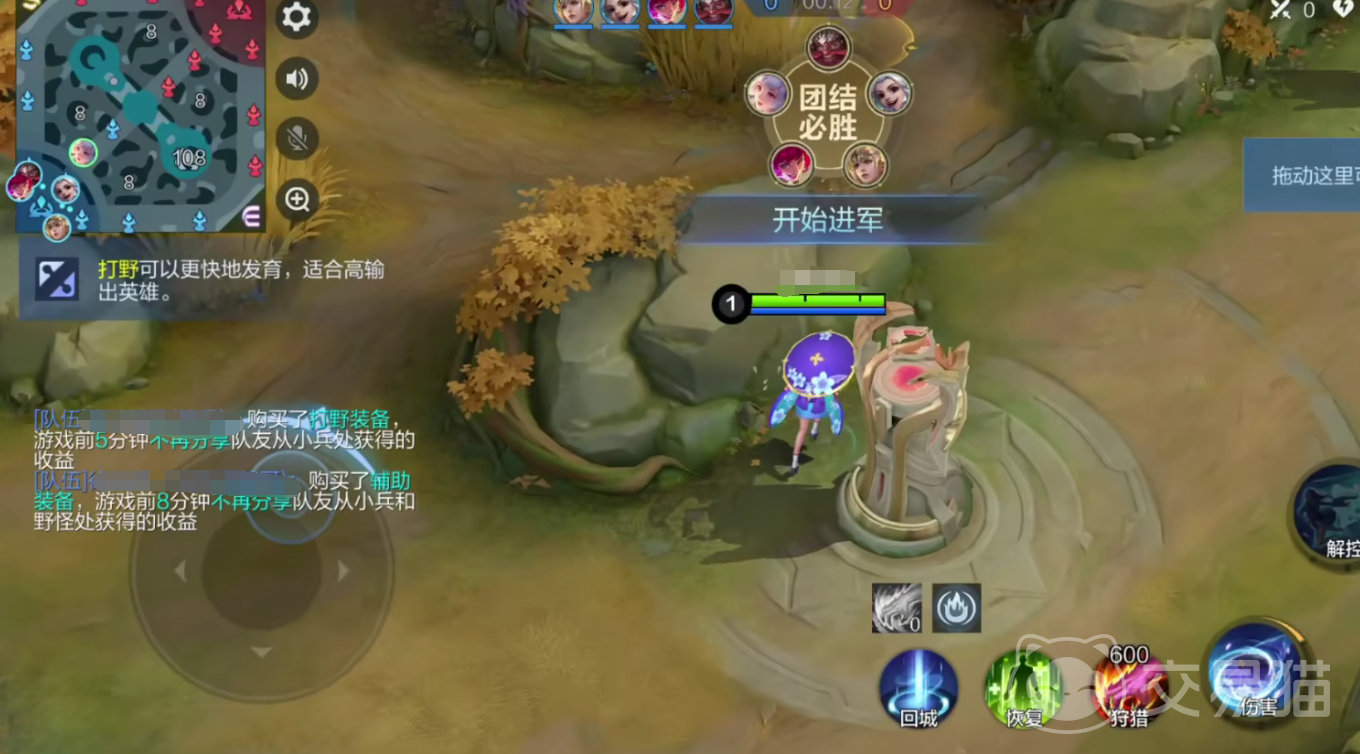 游戏的地图分为四个模块,它们分别代表着对抗路、中路、发育路、野区, 这四个区域需要分配五名角色,倘若玩家使用的是机动性比较强的角色,则可以进入到野区,作为游击打野存在,打野角色需要注重各个野怪的刷新时间,玩家可以选择开局红开或者是蓝开,保证开局的buff恢复效率,部分角色也能够做到无伤打野。