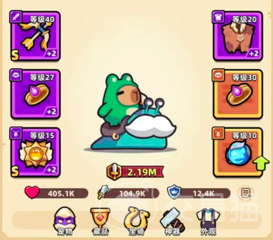除此之外有了卡皮巴拉这个角色可以增加经验养成,并且在每一个关卡当中,玩家能够比较高效的解决敌人,但如果想要拿到卡皮巴拉的顶配还是需要花费一定资金的,比如在大18级的状态下,玩家需要消耗30k左右的金币,而且在装备选择上,建议玩家选择紫色装备会更有利于卡皮巴拉这个角色的成长。