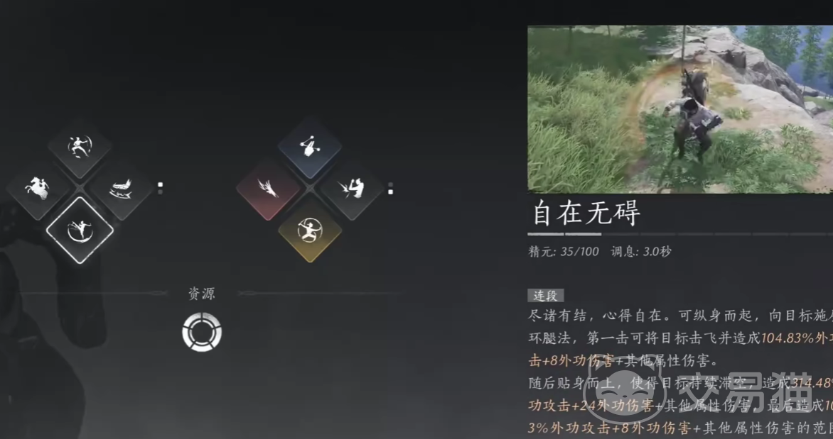 自在无碍是心法技能,总共会消耗玩家35点的精元,调息时间是三秒钟,自在无碍拥有连续攻击系哦啊过,在玩家对敌人施展了五段攻击时,攻击倍率加成将会从原来的100%外攻加点,增加到140%以及150%,并且还会附带有8点、24点、36点的外功伤害属性值提升,是游戏当中比较常见的一个输出心法。