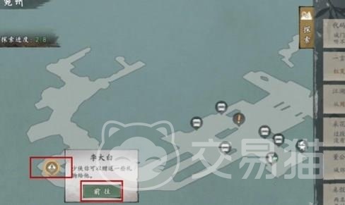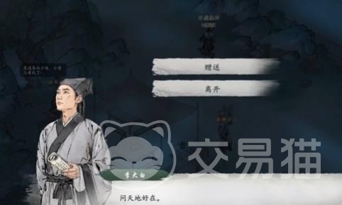 所有的开始,都来自江湖上神秘NPC——李大白。这名表面上普通的江湖人物,虽然隐藏在一个不显眼的地方,但却握有开启这段不同寻常旅程的关键。要打开“代码疑云”,必须先从地图上找出李大白所在的具体地点。还好游戏贴心的给大家标出传送点,点开传送点就可以很容易到达。第一次见到李大白时,没有马上和你谈“代码”这个秘密,而是表现得有点冷漠。这个时候就有必要送礼来增加其好感度了。