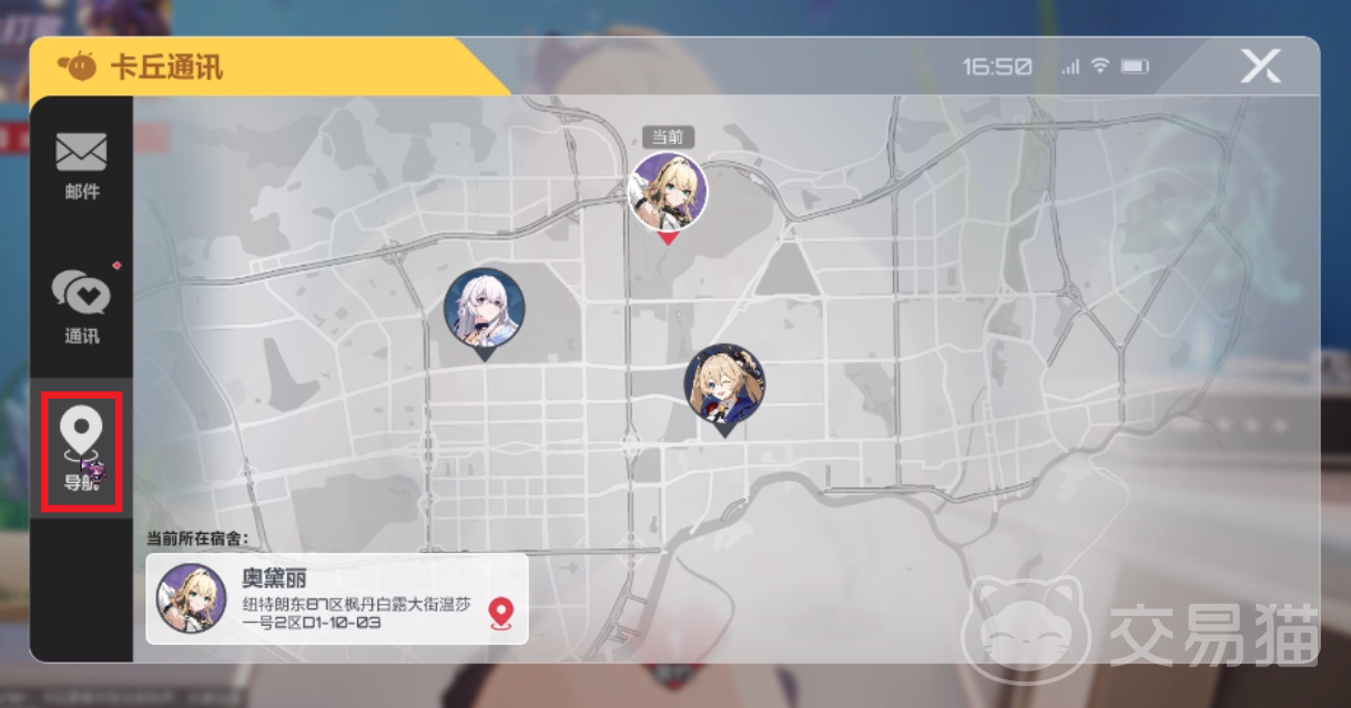 大家在游戏中的主界面里可以看到右上角有一个邮箱的选项,在点击进入这个邮箱之后,可以看到在界面中弹出了卡丘通讯的界面。此时玩家们可以通过左下角的导航这个选项,看到每一个角色所处于的不同的位置,不过由于地图比较大,可能有些角色显示的不完整,玩家们可以拖动地图来查看。在找到自己喜欢的角色之后直接选中,此时就可以看到右边弹出了一个签订誓约的选项框。