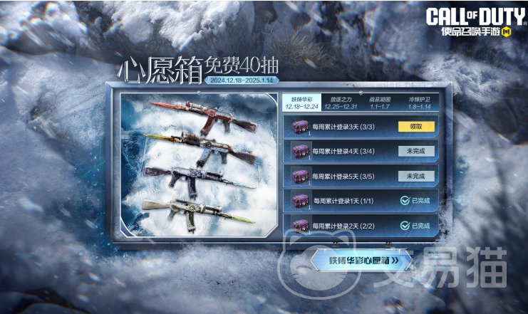 使命召唤手游这次带来了欧皇心愿箱和全新限时挑战玩法,记得准时上线,千万别错过这些丰厚的福利!使命召唤手游凛冬节福利介绍就介绍到这里。最后,祝各位战士在凛冬节欧气爆棚,战场上大杀四方!