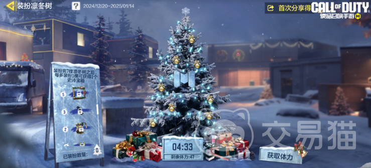 从12月20日开始,全新活动“装扮凛冬树”即将上线!完成每日任务,获取体力点亮属于你的凛冬树,满满的仪式感瞬间拉满!更有史诗级武器PP19-冬境御雪、头像框、背包等诚意奖励静候你的到来。每日收获小成就,每刻都充满大惊喜,战士们可千万别错过这个有趣又有爱的活动。