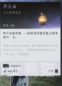 游戏中武器装备的养成包含了许多的内容,大家非常熟悉的套装效果,以及调律和定音等,玩家们还可以体验附魔的强化手段,其实本来应该叫做天工开物的,后来因为可以给武器加上一些额外的效果,被老手称为附魔,可以加入淬火油和淬水蜡以及淬毒散等,这三种属性都是非常重要的,如果玩家们想要使用附魔,还需要找到佛泪参这个道具。