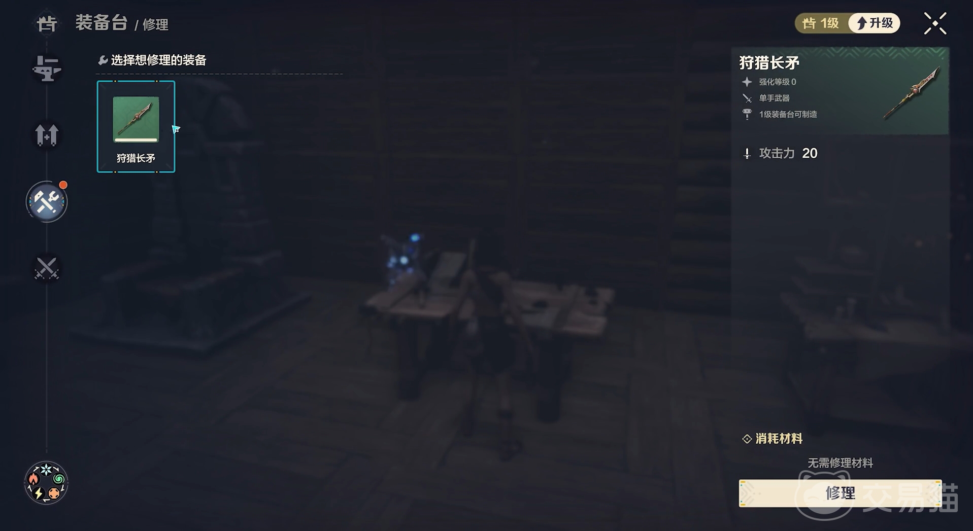 其中制造主要以装备和生活用具为主,只要人们已经解锁了它们的配方,便可在装备台里完成制造,并且每样物品都有着对应的进阶路线,当各位把他们的进阶配方也解锁后,就能制造更上一级的物品。如果这些物品用坏了,亦或耐久不足以再支持人们用太久,也可在装备台将它们都维修好。