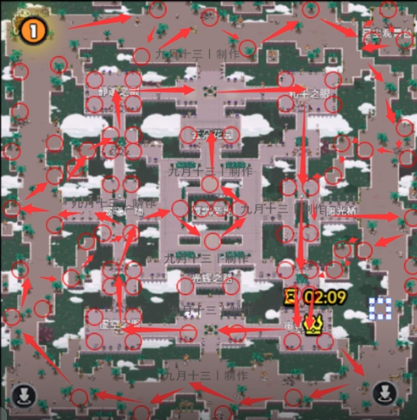 在跑图的过程中没有什么特殊的技巧,而是把天空直接分成三圈,沿着一个方向不停的跑,差不多后就可以直接进入到第2圈。在进入到第2圈时,就可以从中间去寻找门,出去之后循环,然后再从反方向去跑。基本上就没有什么固定的路线,但是如果熟悉位置或者是路线就可以有效提高效率。
