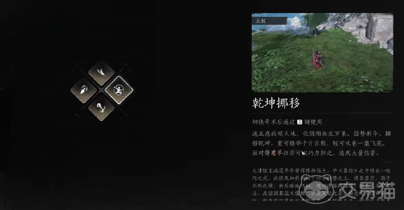 乾坤挪移在探索当中是一个非常重要的技能,它可以在须臾之间将某一个重物移动到玩家指定的区域,以借力打力的方式,对敌人进行反制,在游戏当中尤其是一些被石块阻拦的区域,玩家可以借用这个技能,来帮助自己完成解密任务,以上这四个奇术,都是玩家在前期可以通过主线剧情内容以及简单的操作机制能够获取的。