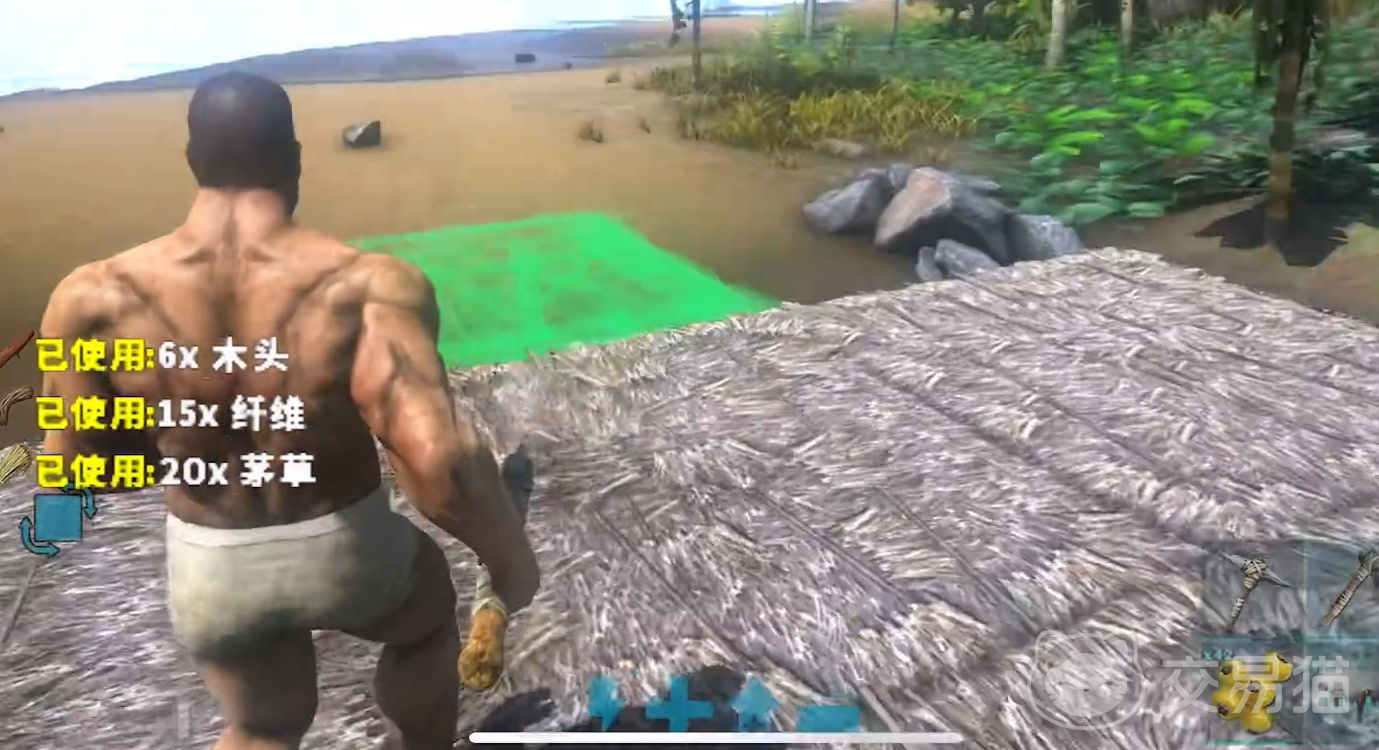 如此才能模拟出真实野外生存环境,自己玩着也更有沉浸感。进入孤岛地图之后,我们可以先在海岸边捡起几个石头。这样就可以先把新手三件套做起来,然后再去砍一下树木,积累足够多的素材。就能打造出石镐,以及我们所需要居住的茅草屋。