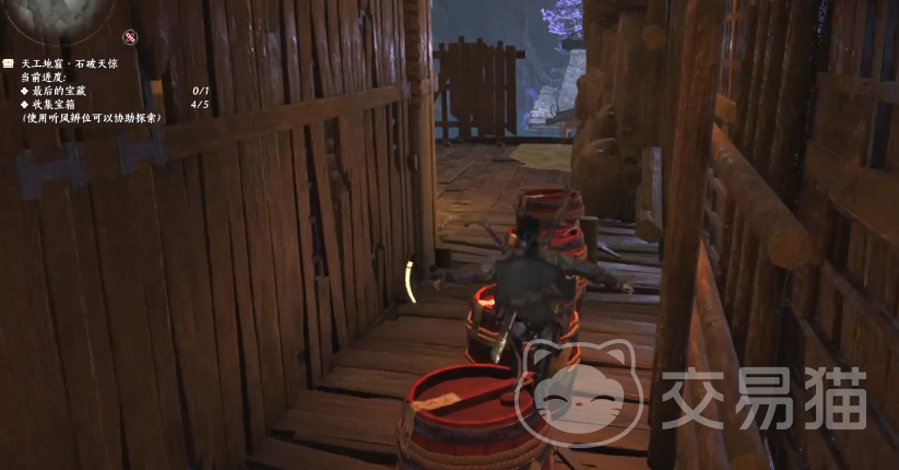 场景外有2个缆车,还是老样子先把小炸药桶放在机关上,自己乘坐第一辆缆车抵达中间区域,然后射箭引爆将缆车停下(速度快不引爆也行),跳上另一头的缆车抵达最后的场景里拿到最后的宝藏。至此燕云地窟石破天惊这一关也就过了,思路并不复杂,大家对照着就可以完成。