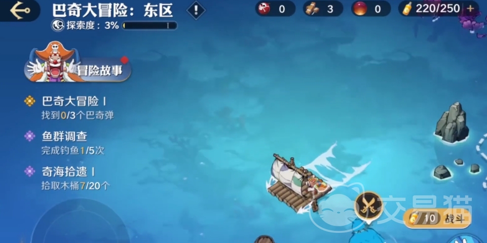 在探索海域的过程中玩家可以在解锁的区块内自由移动,所以在探索海域玩法中还可以让玩家们进行钓鱼。钓鱼玩法很简单,选择好抛钩的地点进行抛竿,等鱼上钩后点击收钩即可有所收获。