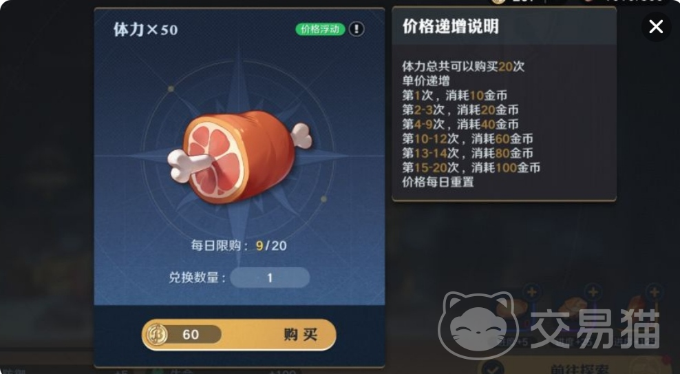 1、体力。这个刚开服是最重要的道具,主要作用就是给工厂刷升级的材料,而在工厂当中就能带来大量的赏金提升效果,同时还有大量的经验给到,能加快解锁各种其他的玩法,更快的解锁主线剧情,第一周推荐大家买9次,后面可每天买3次,等工厂到了中级,那就很难提升了,这时候也可停止购买了。
