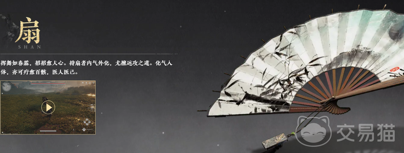 这是一种非常特别可以治疗,持续回复血量的武器,比较适合用来搭配让自己的攻击带有恢复效果,而且它的难度也不高,非常推荐新手搭配使用,它的武学一会挥动扇子对远处的敌人进行四段打击,二是选中一个目标进行治疗,三是在一个位置召唤出一个水人,水人不可以移动,但是每秒都会对范围内的队友进行一次治疗,四是释放出一股水流,为自己或者是队友形成一个持续的治疗效果,总共能回复中量的气血,五是能选择一个重伤的小伙伴,让他重新站起来战斗。