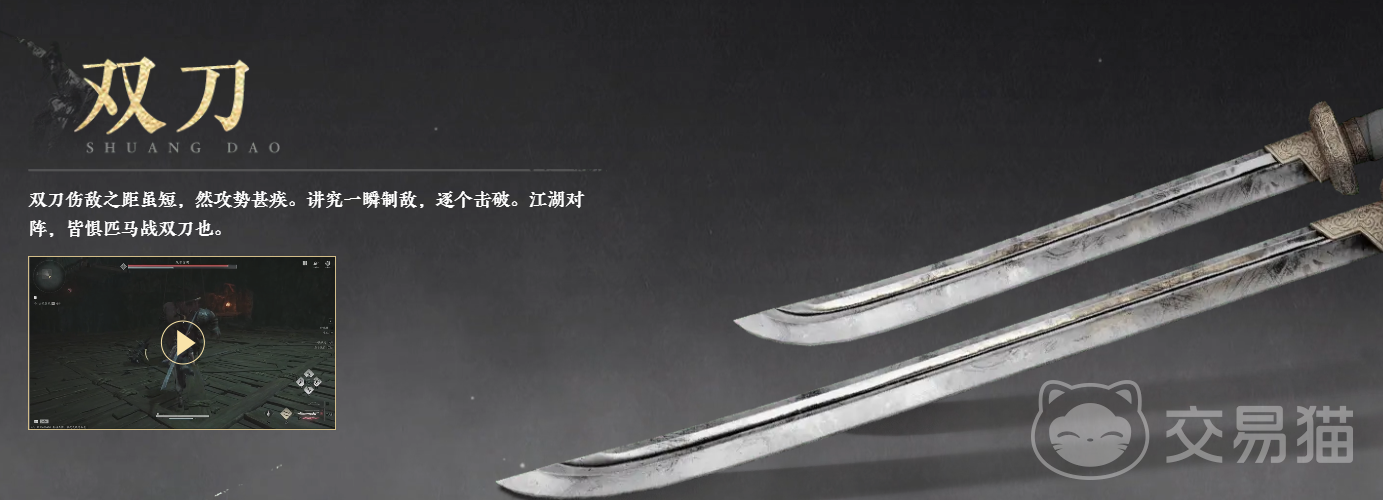 双刀作为近战类的攻击速度非常快速,拥有能快速发动连续攻击的特点,能在扣除自身部分血量后,轻松对敌形成大额的输出量,只要能运用得当,就能用其在战场上面扭转乾坤,它的武学一是将手中的刀架起后,向着前方来一段长距离的冲刺,遭受这个攻击敌人会受多段伤害;