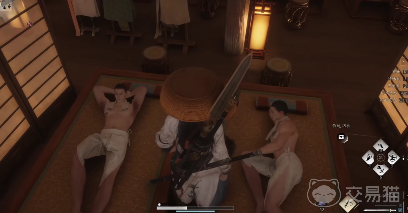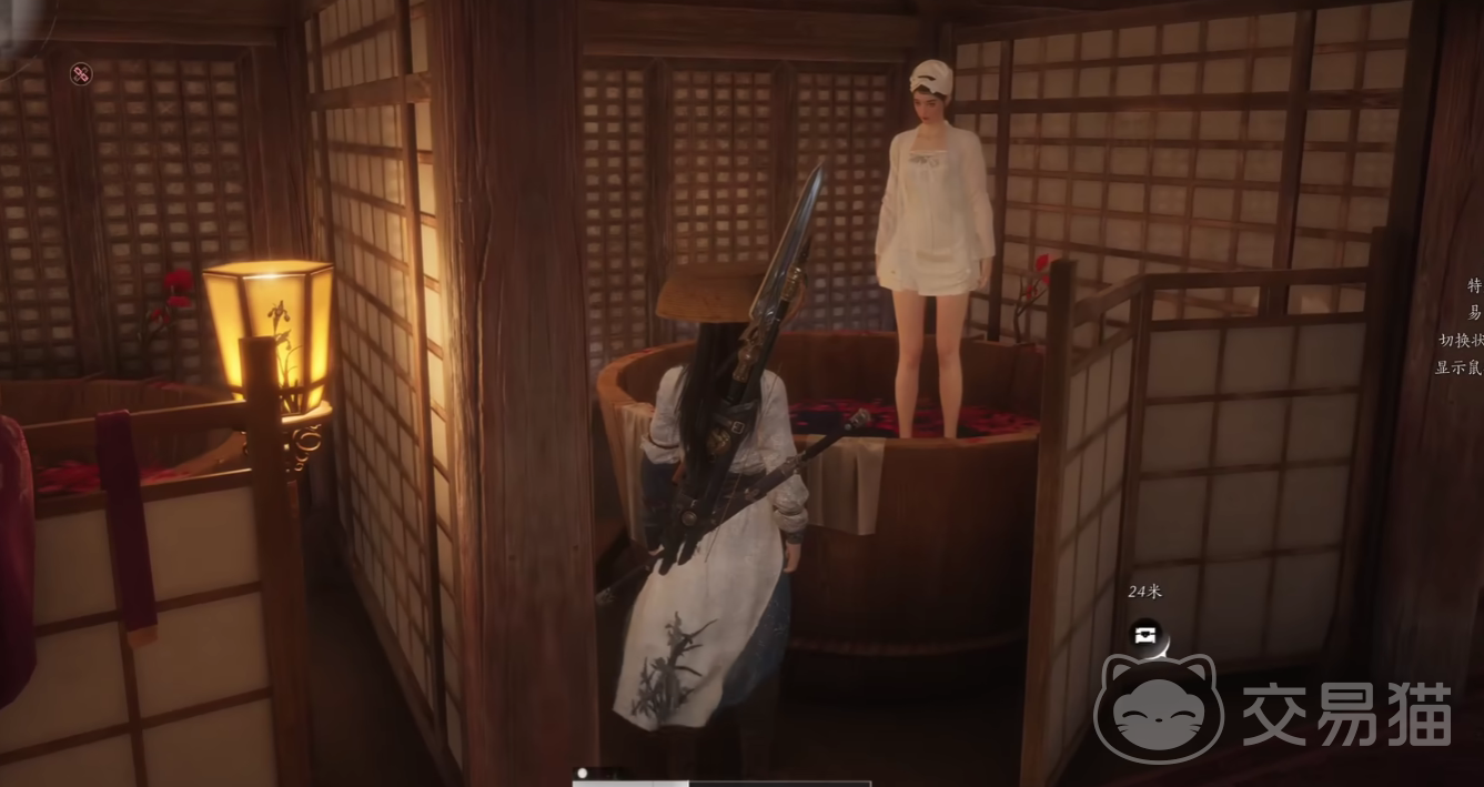 第三层区域是沐浴区域,玩家在此处可以看到很多个NPC在沐浴,此时玩家直接进入到休息区,找到一处房间,并且来到这两个NPC中间的位置处,通过跳跃的功能踩踏地板,这样NPC就会有所反应,并且迅速的离开。