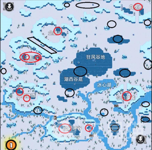 最值得一提的是地图左侧的“冰熊谷”,这是一个宝箱集中地,最多时竟能同时刷新出三个固定宝箱。固定宝箱刷新时间虽不固定,但左侧区域出现的概率远高于右侧,这让许多玩家在探索时更倾向于从左侧下手。尤其是“碎冰桥”附近,那里常有宝箱隐匿在裂开的冰层之下,稍不留神就会错过。