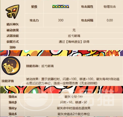 这是一件具有6星物理属性的武器,尽管它没有主动技能,但其被动效果却是令人震惊的——装备后,你的闪避和移动速度都会增加100点,每4秒钟,哨兵神矢会自动追踪最近的敌方单位,并发射一支精准的箭矢,造成大量的物理伤害。这一全自动追击能力特别适用于爱灵活走位和快速清场。