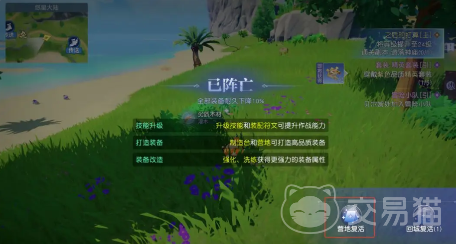 营地除了用来休息观赏风景以外,它也可以作为一个可以移动的复活点。如果玩家去参加战斗阵亡之后,想要快速的回到战场的话,这时候可以来到营地,这样可以帮助玩家节省了跑图的时间,也可以有效的避免损耗。