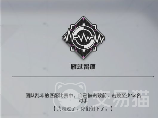 首先要知道的是,在本款游戏中,生涯荣誉一共被分为了三个大类,前两个是只要打开面板就能看到的【战斗勋章】类型,另一个是【荣誉】类型。这时就有小伙伴要说了,为什么在我的页面里没有第三个类型呢。实际上这是因为截至现在,大家还没有完成过任何这一部分成就,想要让这个名为【光辉事迹】的类型在面板中显示的前提,就是需要达成它的要求。当然它也和其他两个一样,按照数量被分为了D-S五个等级。那么接下来就让小编好好介绍一下,目前已经出现过的几个。第一个是【燕过留痕】,它的解锁方法相对来说比较简单,只要在团队乱斗的匹配比赛当中自己被击倒之前,先击败十名敌人,就能解锁。然后是【暴走】,需要在团队匹配的十五秒内至少击倒5个对手。