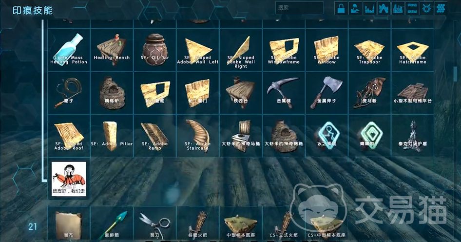 3、小龙虾回血药的图标是一个表情包,合成只需要熟鱼肉和红色浆果,给恐龙喂食后会瞬间回满35%的血量,有着15秒的冷却,这样就再也不用花时间去喂猪了。还有个很有用的道具冰之领域,这东西算是一个非常大冰箱,拥有十倍的保鲜功能,不需要任何的燃料,而且十分的便捷。神奇马桶可以将肉快速变成腐肉,还能保鲜腐肉和大便。神奇烤箱长得和原版精炼炉一样,不过效率是它的十倍。将金属放进去后,2秒就可以烧出一个铁,效率十分的高。神奇护盾是一个泰克防护罩,需要解锁原版的泰克护盾印痕才可以使用,而且也是需要放入泰克能量版作为燃料的,不过它的启动速度非常快,并且护盾的范围是原版的两倍,绝对可以把玩家的基地全部都给罩起来,也是非常的实用。