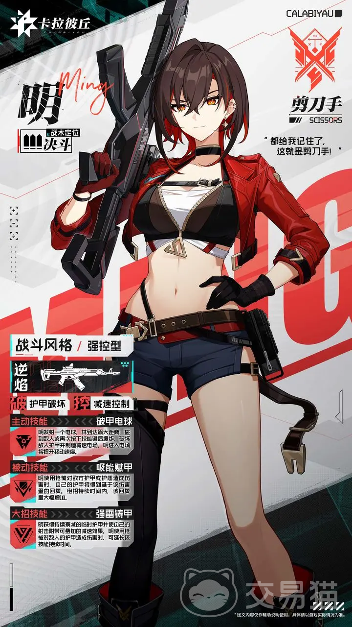 明这个角色使用步枪作为武器,同样的酷girl,武器是步枪当中伤害最高的,由此可见她的输出能力。技能这块,能对敌人射出红球,该物品还能穿墙甚至有破甲的效果,容易对敌方打出真实伤害,而大招方面又能给自己补充状态,实力非常在线的角色。