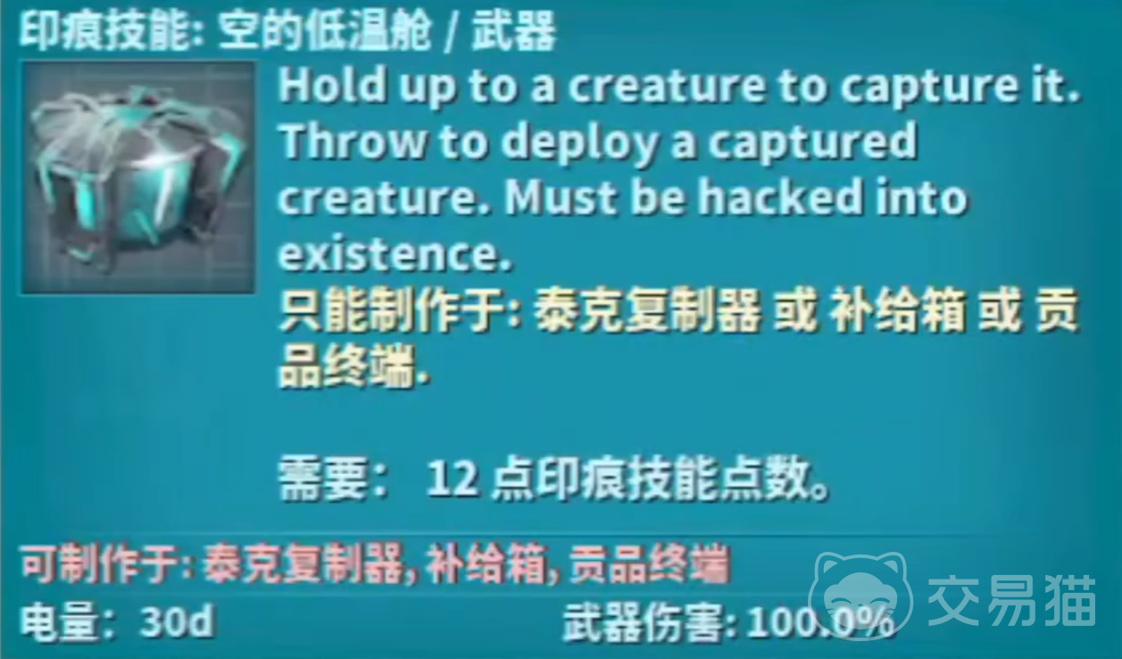 3、需要注意的一点事,如果仅仅是有一个仓的话,那么是无法正常使用的,因为重置版的和端游版本是有一些区别的。重置版的是需要用到低温冰箱来进行充能的,因此玩家还需要制作一个冰箱,或者是使用代码刷出来一个才行。