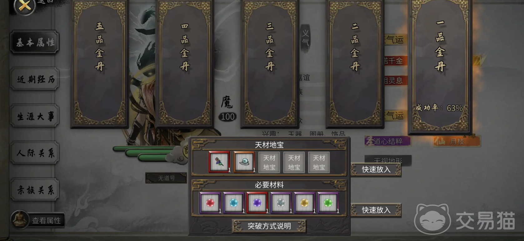 然后介绍第三种方法,使用炼妖壶让壶妖进行历练,历练的类型要直接选择第三个,就是能够获取技艺书以及灵果的那个选项,这种也能慢慢积累该材料的。第四个方式,主要是在没有宗门时,可进行突破。