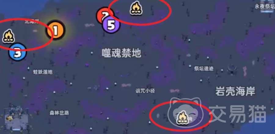 开启后会英勇小镇随机刷新逃兵,将其击败可以得到奖励,说是随机的其实也有一些固定的刷新点位,文中图示红圈圈标记起来的地方。值得一提的是湿地地图中,如果3个点位都没有刷新的逃兵的话,那么一定是在右上角的永夜祭坛里面。