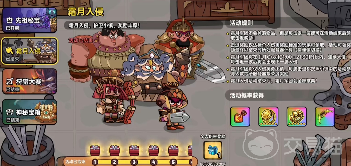 在后续的更新中,对霜月入侵进行了优化,每一波击退都可以得到许多服务器繁荣度奖励,军官怪物不会再掉专属物,每击退一波怪物能都在活动结束后领取击退奖励,这个奖励仅限个人伤害达标后领取。然后就是活动持续时间内,会连续入侵,这一波击退后下一波会立刻刷新,一共12波。