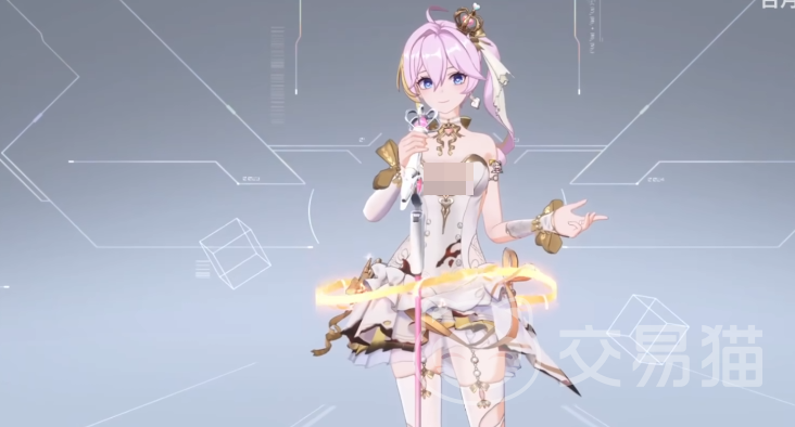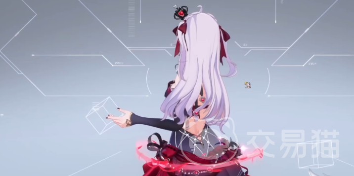 衣服整体的设计也是比较简单,胸口超大的暗红色蝴蝶结,吊带也是实体建模,有银色挂饰。手部则是不对称的设计,左手是长袖套,右手则是只有手腕上有一个小小的装饰用袖套。裙摆的设计则显得有层次感,是三层结构,最里层是半透明结构,后面裙摆上的挂饰也是实体建模。