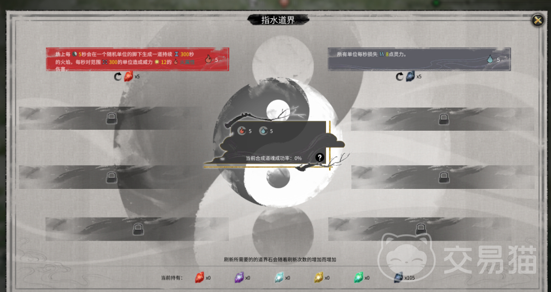 前期需要先打材料,每一个道界都会出两种颜色的石头,建议只打前面两个没有小boss的房间然后就退出重打,多刷几次将每种石头到2到3万的样子,就可以做好挑选的准备了。