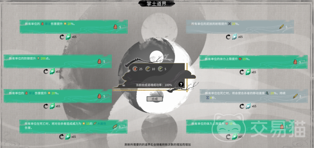 打完第一关就要刷属性,注意前往不要选硬攻硬防的属性,每关结算的词条只会对当前道界的生物起效,所以像所有单位加180攻这种词条,选多了会导致小怪普攻一下,直接导致我们失败,所以如果随机刷到这种一定要无视,不能选择。