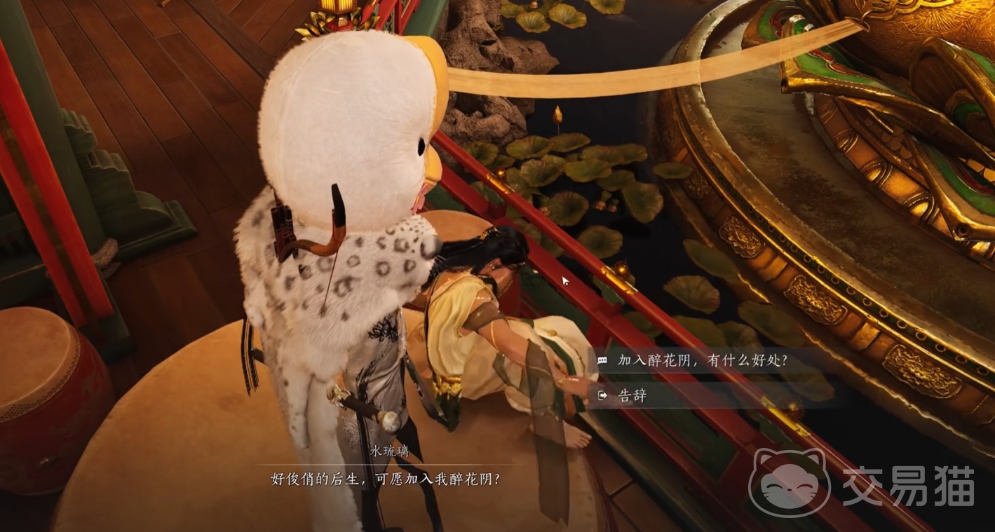 解锁开封和樊楼后,各位要想加入醉花阴,还可来樊楼找到坐在鼓上的水琉璃,与之进行对话后就能触发加入醉花阴的选项,这就是第四种方法。该方法是长期有效的一种加入醉花阴的方法,即便玩家们之前加入了樊楼,也能通过该方法加入醉花阴,但前提是与水琉璃对话时自身不能有任何门派。