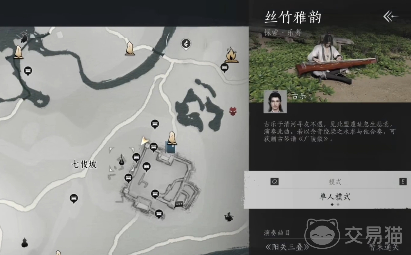 在地图上人们会遇到一些以乐器图标显示的探索玩法,来到相应地点后与对应的NPC交互后,就能进行丝竹雅韵的挑战,大家也将会拿出自己所得的乐器来演奏对应的乐谱,若是能成功完成本次丝竹雅韵的挑战目标,人们就能拿到本次探索的乐谱作为奖励。