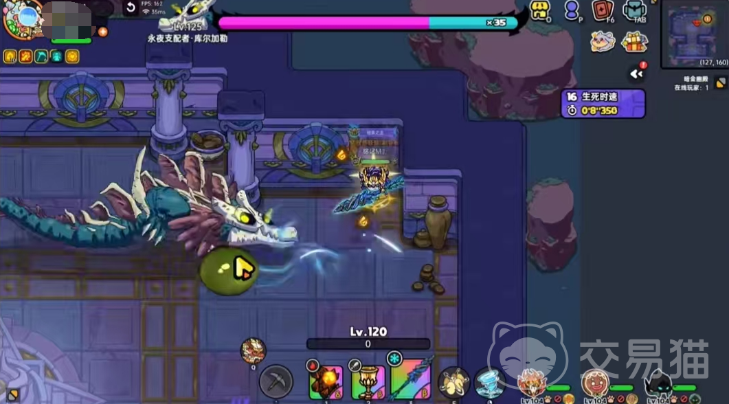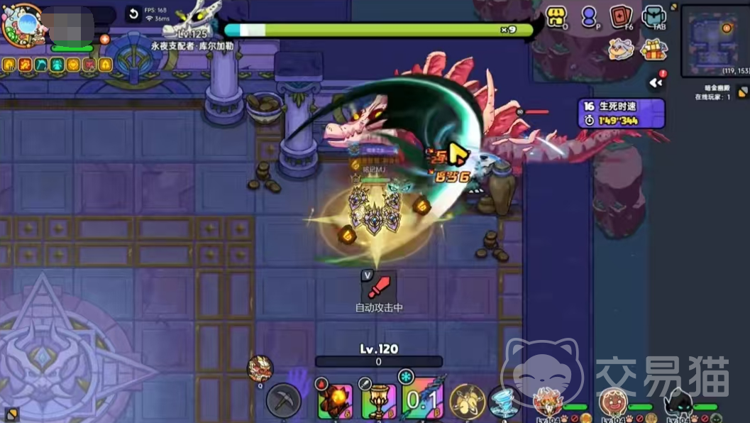 任务启动以后,大家会看到一条龙,也就是boss。战斗时可以将boss向右上角拉,将龙拉到指定位置后进行攻击,全程不用动,直接挂机输出即可。打boss时有两个阶段,第一个阶段有很多小史莱姆,小史莱姆数值低,比较好打,站位的话建议大家选择两个,一横一竖的砖缝之间。