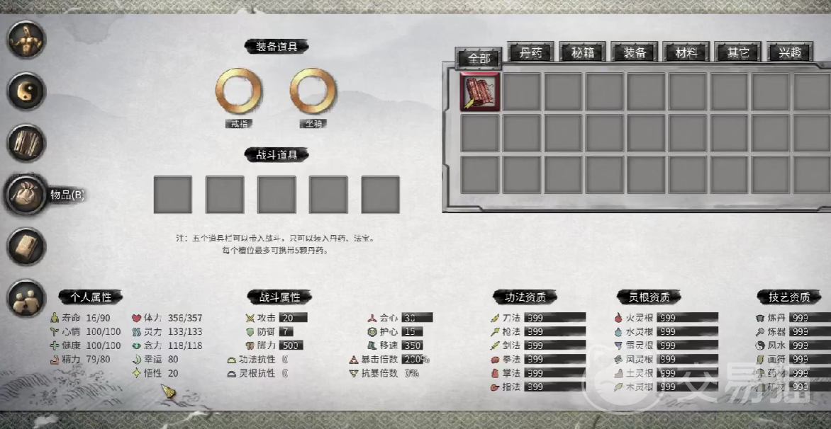 第二种方法是,玩家在游戏后期,使用一些能够增强悟性的道具,例如悟性丹药或者是灵蕴丹药等等,这一类的丹药可以或多或少提升玩家悟性的数值,但使用丹药具有一定的弊端,由于所有的丹药都会附带有耐药性,玩家滥用时,就有可能会触发耐药机制,导致玩家在日后使用时,无法发挥出丹药的最大作用。